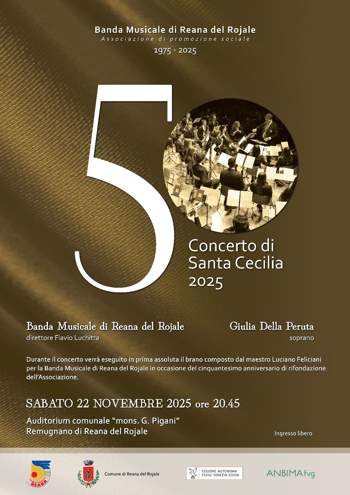 La Banda Musicale di Reana Del Rojale APS è lieta di invitarvi al tradizionale concerto di Santa Cecilia.
